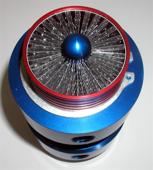 ![]() The Thermal Hard Pipe incorporates Fitting Collars that seal to the main inner and outer pipe with Viton o-rings. This Fitting Collar simply slips on the ends and is held in place with a large c-clip. This allows the Fitting Collar to be rotated 360 degrees to any position you like for hose placement. The Thermal Pipe and Fitting Collars are anodized for corrosion protection and appearance. Each Fitting Collar has 3 separate coolant ports that are threaded 3/8" NPT. This allows you to attach from 1 to 3 supply and return lines to each Fitting Collar for plenty of coolant flow volume. The Thermal Hard Pipe inlet and outlet connection surface is grooved for maximum grip with your connector hoses. The inlet of the Thermal Hard Pipe is "ramped in" to minimize interruption of the air stream by eliminating the wall thickness ledge normally associated with a tube connected to a hose.