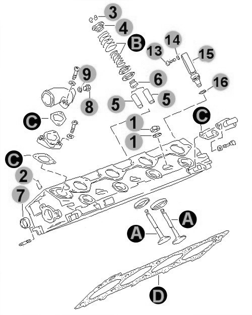 (A) Valves (B) Valve Springs OE & Aftermarket (B) Lindsey Racing Valve Springs (C) Gaskets 944T (D) Head Gaskets Standard (D) Head Gaskets Cometic Steel (E) Oil Pan Miscellaneous (F) Electrical Componants (G) Raceware Cylinder Head Studs |