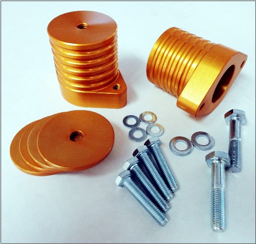 This engine mount system is available for the 924S, all 944's and the 968. This is not a solid motor mount, but a two piece mount with a vibration isolator between the two halves. It's much firmer then a stock mount without the vibration of a solid mount. These mounts are set up 10mm shorter then the stock engine mount. This means your engine will be sitting 10mm lower then stock height. You can purchase separately our 5mm thick shim disc kit (4 pieces) that allows you the raise the engine back up to either 5mm 5mm less then stock height or back to stock height. The Ultra Mounts must be "set-up" before being installed. Click Here to view the instructions from the Tech Garage section of our web site. Adjustable Height Solid Engine Mount: