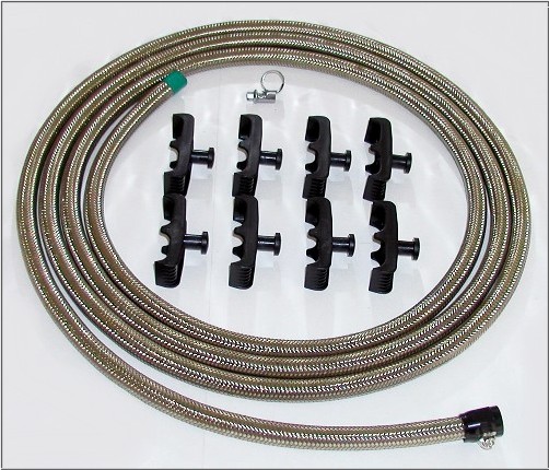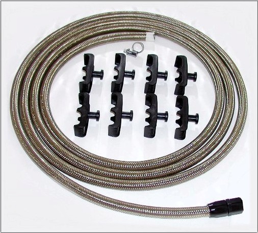 FUEL RAIL TO TANK KIT: (LRA-944-FLK-111)![]() This fuel line kit runs from the hose barb type fuel regulator outlet connection at the fuel rail to the fuel tank. It uses the SS Braided hose because of it's underneath the car exposure. KIT INCLUDES: