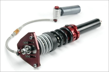 The 4-way is a top of the line product. The low-speed compression, high-speed compression and rebound damping is separately adjustable. The low-speed compression damping controls the front-rear and left-right movements of the car (pitch and roll). The high-speed compression controls the movement of the wheels over sharp bumps, like marbles and curb stones. The rebound damping controls the body movements and absorbs unwanted energies, which otherwise would unsettle the car. The 4-way can be equipped with spring rate adjusters and the �Black Titan� coating. In special applications, if the physical room allows us, we can fit the �XL� version, upgrading the diameter from 45 to a huge 50 or even 52mm.