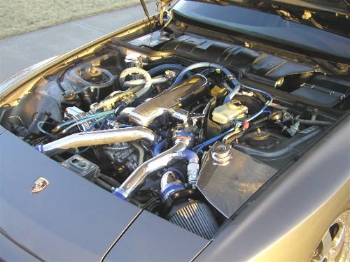 86 Monster 951 Street Car. 2.8L. Modifications include Lindsey Stage III head, Lindsey Intake Manifold, Webcam, Lindsey Stage IV 80mm Big-Mo-Fo MAF w/Mafterburner and WBOS kit, Lindsey Super 75 Turbo, Stage II Intercooler, Lindsey Wastegate, 3" Exhaust, Hard Pipes. BOV and many other items such as thermal coatings, polished cam tower and more. Jae brought his car to us from SC to have his Maf and Turbo installed. This car is the one we proto-typed the Stage IV kit on and built our first Billet expansion tank which will become a standard product. Jae also purchased his Full Polished Kineses wheels from Lindsey Racing.