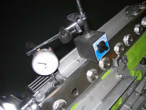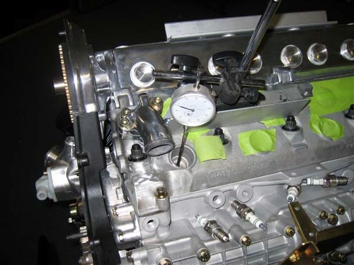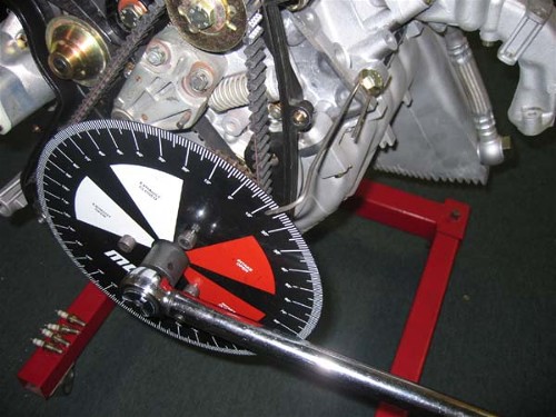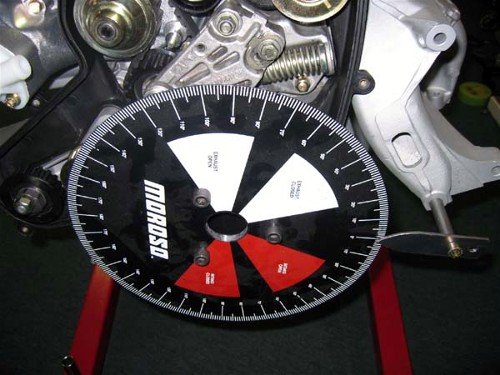 DEGREE IN 944 TURBO CAMSHAFTNote: This set-up process must be done using the LR solid lifter inspection port on #1 intake valve. You cannot accurately locate the dial indicator without this port to check the position.Remove the power steering belt and radiator fans. Install LR Degree wheel and hub assembly. Slide the hub over the power steering pulley but do not tighten the Allen set screws yet. Mount a pointer to reference the TDC location on the degree wheel. (this can be as simple as a heavy coat hanger bolted to the engine as a pointer). Bring #1 piston to TDC with dial indicator in spark plug hole, or with flywheel mark in inspection hole at the back of the engine. With #1 piston on TDC, rotate degree wheel and align with pointer so degree wheel reads ‘0’ degrees. Remove the 2nd cam box cover plug and #1 intake valve inspection port plug. Set up dial indicator with ‘LR lifter foot’. Adjust depth of dial indicator so lifter foot rests on top of the #1 intake lifter, next to the cam lobe. Make sure the foot does not get under the cam lobe! Adjust the dial indicator to read ‘0’. Using a breaker bar or torque wrench, and 24mm deep socket, rotate engine one revolution until you see the dial indicator begin to show valve lift. The longer the bar, the more accurately you can turn the engine over. Slowly turn the engine until the dial indicator reads .050” lift. It can help to have a second person with you, one to watch the dial indicator and the other to watch the degree wheel. You will see that once you relax the breaker bar, the degree wheel will back up 2-3 degrees. Holding the tension against the cam belt, now read the degrees before TDC on the degree wheel. Turn the engine through it revolution and check this lift vs. crank position 2 or 3 times to make sure you are getting an accurate reading. Different camshaft grinds have different set up specifications. Refer to your LR cam set up sheet to determine your cam’s number of degrees BTDC. For this example, we will use the WEB 274 cam profile. This cam has a set up dimension of 5 degrees BTDC. If your degree wheel is not on the 5-degree BTDC mark, you will need to adjust the cam gear to correct the setting. For those using the LR adjustable cam gear, simply loosen the four bolts on the face of the cam gear. Now gently turn the engine while watching the alignment marks. Make small changes, one mark on the cam gear will make several degrees of change at the crank. Re-tighten the 4 cam gear bolts and recheck your cam position. Repeat the process until you get the correct relationship between the cam and crankshaft. ![]() ![]() ![]() ![]() ![]()