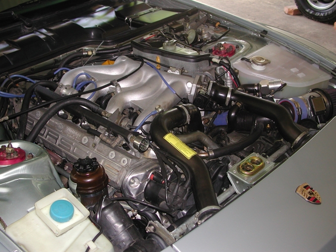 Glacier blue exterior/marine blue interior MODIFICATIONS:R&R head, match ported, polished, resurfaced, 5 angle valve job, o-ringed, Raceware headstuds, stainless o-rings, valve guides & valve seals. Widefire head gasket K-27/6 turbo w/MAF Webcam Bosch 52 lb injectors Extrude Hone Intake MSD 6AL ignition GHL 3" cat back exhaust w/mini cat M030 Suspension: revalved Koni's/spring rates; 350 front/253 rear w/28mm torsion bars 968 M030 30mm hollow front sway bar and 19mm adjustable rear sway bar Aluminum Strut Brace Zimmerman Cross Drilled Rotors 2002 Porsche 996 10 spoke 17" rims w/Michelin Pilot Sport PS2s Weltmeister adjustable camber plates Lindsey manual boost controller Lindsey Adjustable Fuel Pressure Regulator Lindsey Dual Port Wastegate Lindsey billet aluminum blow off valve AutoMeter fuel pressure gauge AutoMeter air/fuel gauge AutoMeter oil temp gauge AutoMeter boost gauge |
