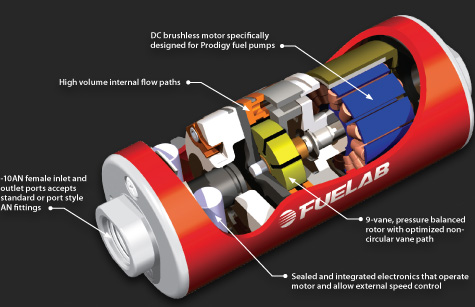 FUELAB has taken Fuel Delivery to the next level... Digital. Prodigy Fuel Pumps are the automotive aftermarket's first and only speed controllable DC brushless driven fuel pump. Fuelab's award-winning, patent pending designs offer improved durability, substantially higher efficiency, and lower current draw. With digital fuel delivery you get unheard of electro-mechanical efficiencies in a package half the size of competing pumps.