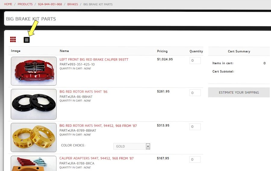 "LINDSEY RACING" SITE NAVIGATIONPRODUCTS are categorized by Car Model ( 944 ) and Product Group ( ENGINE/TRANSMISSION ) and further by product type ( BOOST CONTROLLER ). The categories go to as many as 6 levels deep. You can easily slide down and over and down and over and so on however deep through the menu system using the drop downs. You can also "SEARCH" for a particular item by part number, partial part number, part name or partial name by entering that in the search window generated once you click on the magnifying glass icon under the SHOPPING CART link in the upper right of the web site. While navigating using the menus, it generates a bread crumb trail. You can click on different levels using that to back track or navigate. When you land on a product category page, such as "BIG BRAKE KIT PARTS" you can change the way the page is viewed by clicking on either the box with 9 dots on the upper left of the box with three lines. It changes the page from a standard three across to a "quick add" vertically stacked page. Some pages we start you off with the three across and some we start you with the quick add. You can switch back to forth to whatever you prefer to view the page in. By clicking on the small "product picture" or "product part number" in this category page layout, you will get more detailed information such as applications, number used per car, related products, etc... If you know you want it, and don't need the details, when you roll over the picture area, a "QUICK VIEW" tab will pop up. By clicking on that, you get a new pop up window where you can simply add to cart. ![]() If you can't find what you looking for, please contact us for help. |