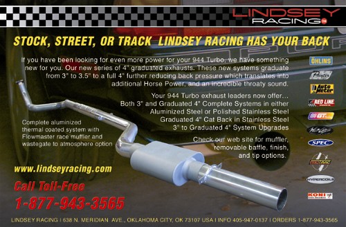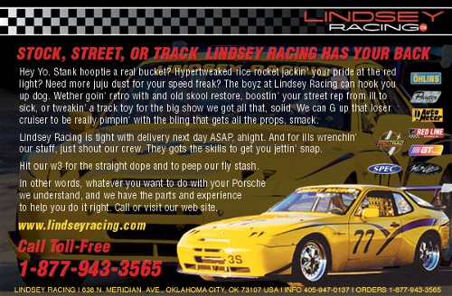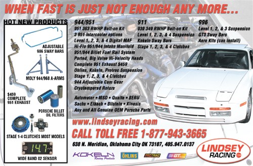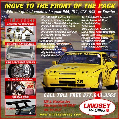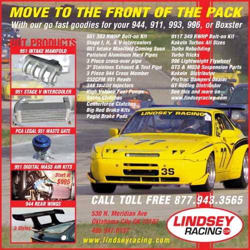 PROMOTION & SHOWSLindsey Racing has attended and sponsored several events or shows. For 5 years in a row, we have been the main sponsor of 944 Fest for example. We were the National sponsor for 44 Cup for 3 years in a row and continue as a contingency sponsor. We have put on displays at Park Place Porsche in Dallas and RUF Auto Center in Dallas as well.