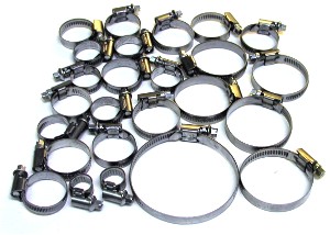 All of the hose clamps for a 944 Turbo Dry Turbo radiator hose kit using OEM type rubber hoses. Does not include clamps for the heater bypass hose kit sold seperately.