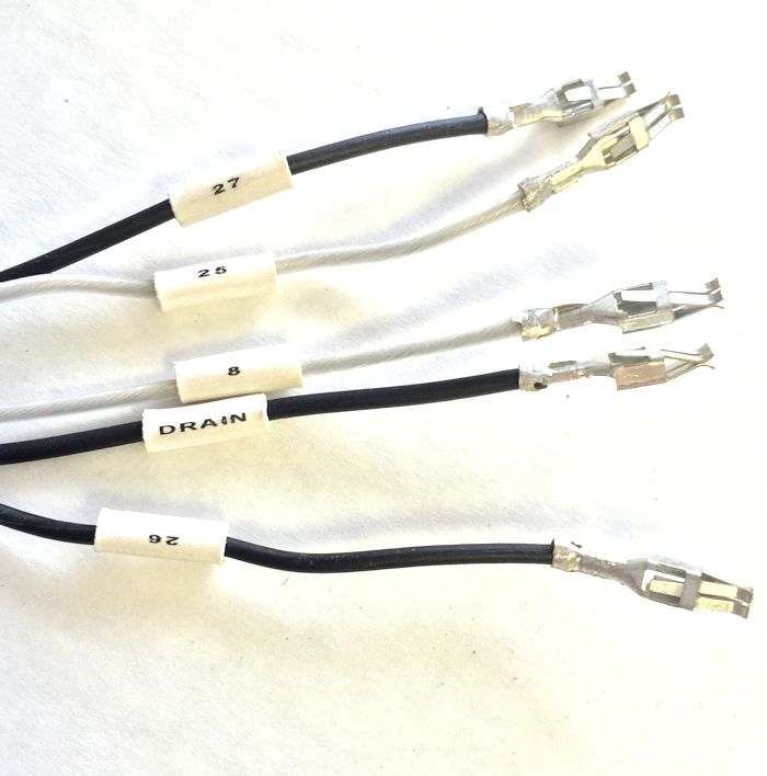 Step #11 "Solder Ground to Grounds."We need to attach the brown ground wire to the bare ground wires on the new harness. Here you see the solder connection done. It is not necessary to tape this connection.Insert the new terminals into their assigned slots. The wires on the new harness are tagged with the assigned DME pin numbers.