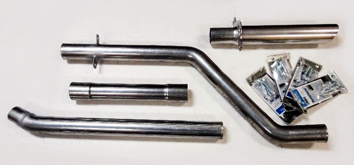Pre-Muffler Muffler:The 2.5" system sounds awesome with any of our muffler choices. For some however, it may be a little to loud. For them, we offer a Pre-Muffler muffler. This is a blow through muffler with little or no restriction that goes in place of the second pipe in our system.