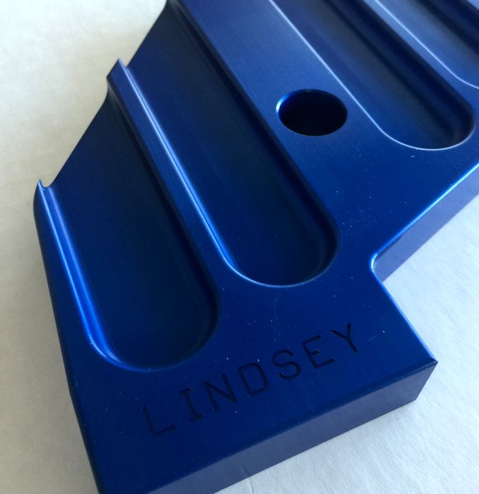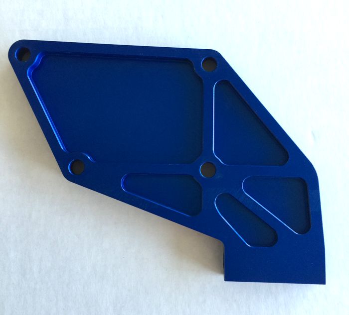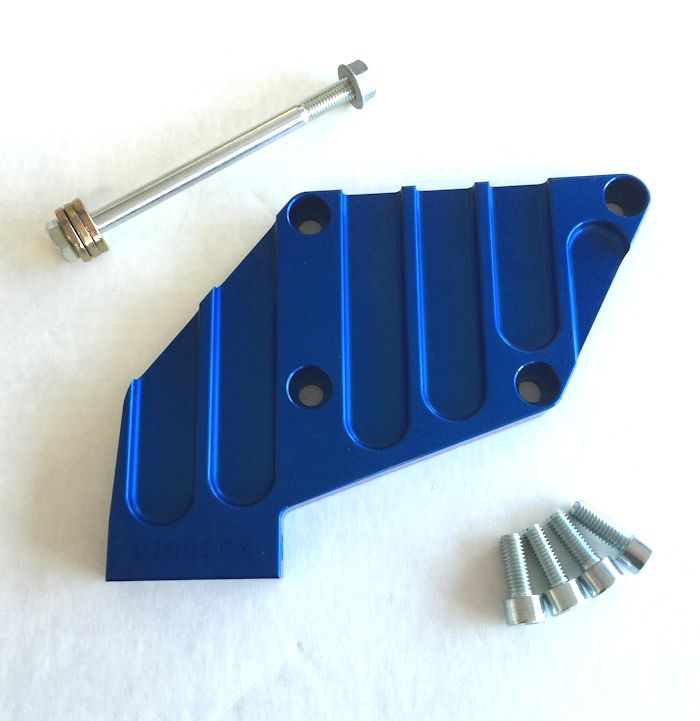 Lindsey Racing A/C Delete Bracket anodized in Blue.
