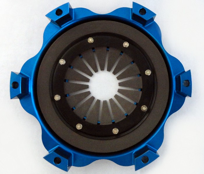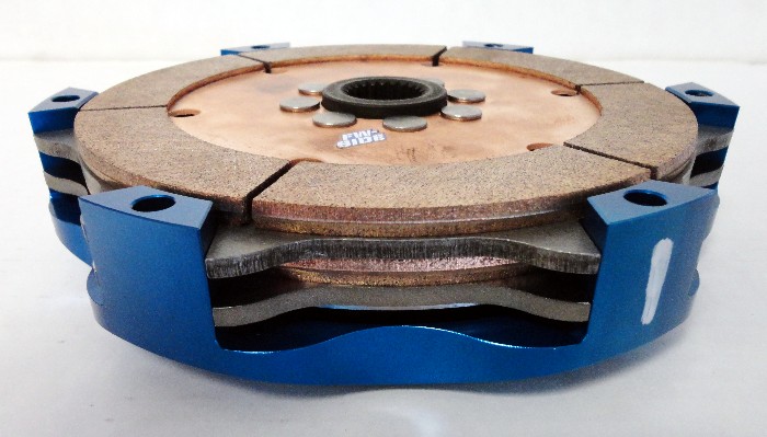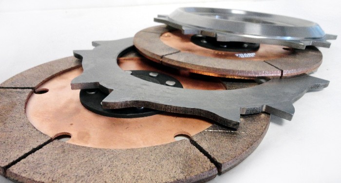 Featuring a lightweight Aluminum Pressure Plate squeezing Twin 185mm Carbon Graphite Semi-Metallic