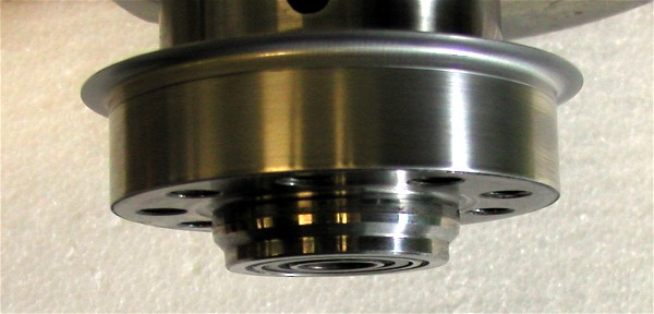 On a 100mm bore, we gap the top and 2nd rings to .015" and oil ring to .025". We feel it's better to run on the higher range of the tolerance to avoid any problems by playing it safe. Higher boost requires higher gaps than the small end of the tolerance range and we don't always know what the customer will end up doing. The top ring (compression ring) is an advanced profile chromed face stainless steel ring part. The 2nd ring "scraper ring" is a cast iron tapered face part diamond finished to a perfect tolerance. Oil ring is taken care of by twin chrome steel rails with an oil expander ring in between. You won't find these anywhere else. Better material than the Genuine Porsche and retain your proper gaps on honed bores. Perfection! Not only is this the best ring solution for your 100mm bore engines, but the price makes it a no-brainier. Our Lindsey Racing Ring Pack sells for $250 for the entire set! Crankshaft Seal Surface RepairThere isn't much worse news than finding a leaking rear main crankshaft seal. It's not the price of the seal itself, but the labor involved with changing it. It's like changing the clutch assembly, and then some! However the unfortunate news is that simply changing the seal may not stop the leaking. To seal efficiently, the crankshaft seal must run against a smooth, round surface . This is referred to as the seal counterface. If the counterface becomes worn or damaged, the seal will no longer be able to fulfill its function, which is to retain lubricant and to ward off contaminants. What typically happens is the counterface becomes damaged when a contaminant particle is caught under the seal lip and creates a track or groove as the crankshaft spins. As this continues, the seal will allow more particles to pass or get stuck, and the seal efficiency deteriorates, eventually leading to a leaking seal causing oil spots on the garage floor, burning oil on the exhaust, oil loss and the potential for damaging the clutch assembly. To correct the situation, it may be necessary to repair the crankshaft surface since a simple seal replacement will likely not be sufficient. To repair the counterface surface, it's usually necessary to disassemble the engine and remove the crankshaft in order to be able to grind down the counterface until it is within specification again. However, if the groove is to deep, metal must first be added and then the shaft has to be ground down to restore the original diameter. Otherwise a new seal will not function properly. There is a fix for the problem and one that unless your crankshaft looks perfect (good as new) on that counterface sealing surface, we recommend it be performed. It may be possible to do this with the crank in the car, but we will let you know once we perform that task. A thin metal shaft sleeve is installed over the counterface of the crankshaft. This .011" thick stainless steel sleeve is thin enough that it will still work with the stock size crankshaft seal. Although the installation is pretty simple, it should be done carefully to achieve the best results. As the thin-walled sleeve has an interference fit, any disturbances on the shaft surface may create a similar pattern on the sleeve surface and the seal will leak. Therefore, the seal counter surface of the crankshaft should be carefully cleaned and any burrs or rough spots should be filed down prior to installation. Deep wear grooves, scratches or very rough surfaces should be treated with a suitable powdered metal epoxy filler and the sleeve must be positioned on the shaft before the filler has hardened. Loctite “Quickmetal” (#66010) works well for this. In this picture, on this pre-machined and cleaned crankshaft, you see a worn groove in the counterface of the crankshaft where the seal rode. This one is pretty severe and is almost guaranteed to leak.