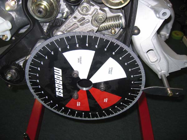 checked the relationship with our new Lindsey Racing Camshaft Degree Wheel Kit and discovered his cam was 5 degrees retarded. The adjustable gear was absolutely necessary in this case since the performance we were looking for required the cam in a particular position.