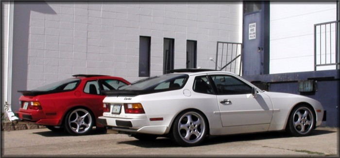 A case of Sibling Rivalry... For the past few days, knowing the news letter needs to go out , I have been trying to figure out what to use as the "cover" shot. I thought maybe a picture from the parts rooms, the packaging areas or perhaps the shop somewhere. Even this morning, September 30th, I still hadn't decided what to shoot and I knew time was running out. I drove my red 89 Turbo S in today and parked it by the side of the building. Wes and I went out in the country and were doing some fine tuning on my white 88 Turbo S with our new LR/951MAX Chip set. When we returned, I parked the 88 close to the 89 not thinking much of it. Then later when it came time to call it a day, I walked outside and looked at the two cars sitting side by side. I stood there for a minute or two asking myself which car should I take home for the weekend. I realized this was a delemma I haven't faced before. I recently purchased the 89S and never had both cars at the shop at the same time before without anything else to drive home. Do I take the younger almost stock (278 RWHP) Beautiful Guards Red 89 S or it's older sibling the Sporty Alpine White 88S with 500 RWHP. Well... you will just have to guess how it turned out. Then the proverbial "light bulb" came on and I snapped a couple of pictures of the brothers.